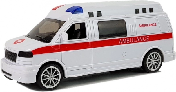 Realistyczna karetka na napęd wsteczny ze świetlnymi i dźwiękowymi efektami ucieszy każdego małego ratownika. Biały pojazd z czerwonymi detalami i napisem AMBULANCE oferuje światła, syrenę oraz szybki start po naciągnięciu. Spełnia normy CE i EN 71.