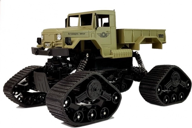 Ten solidny model terenowy zaprojektowano z myślą o maksymalnej zabawie w każdym środowisku. Gąsienice zwiększają przyczepność i dzielność terenową, a napęd na wszystkie koła oraz niezależne zawieszenie pomagają pokonywać kamienie, piasek, śnieg i trawę. Dzięki dwóm silnikom pojazd ma dość mocy do podjazdów i precyzyjnej kontroli.