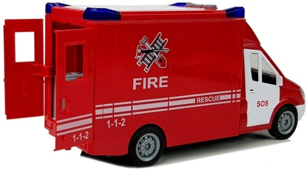 Wnętrze i nadwozie są starannie odwzorowane, włącznie z otwieranymi tylnymi i bocznymi drzwiami dla łatwego dostępu do wyposażenia podczas „akcji”. Wytrzymała plastikowa konstrukcja i certyfikat CE zapewniają bezpieczną zabawę. Zabawka odpowiednia dla dzieci od 3 lat, zapakowana w atrakcyjne pudełko – świetna na prezent.