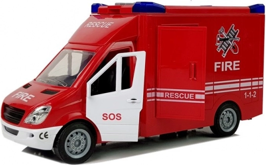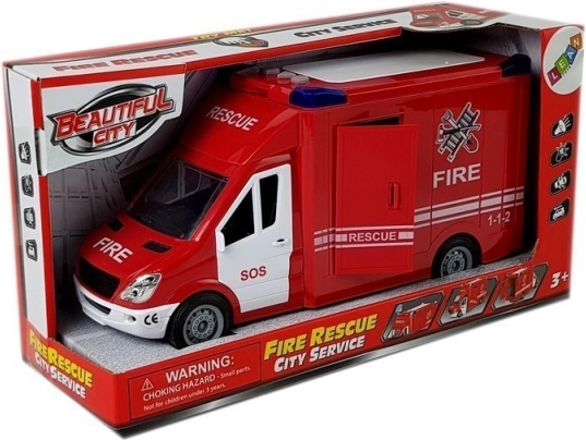 Realistyczny wóz strażacki dla małych ratowników zachwyca dopracowanymi detalami, otwieranymi tylnymi i bocznymi drzwiami, działającymi światłami i dźwiękami syreny oraz łatwym ruchem dzięki napędowi ciernemu. Idealna zabawka dla dzieci od 3 lat, wykonana z wytrzymałego plastiku i dostarczana w ozdobnym opakowaniu.