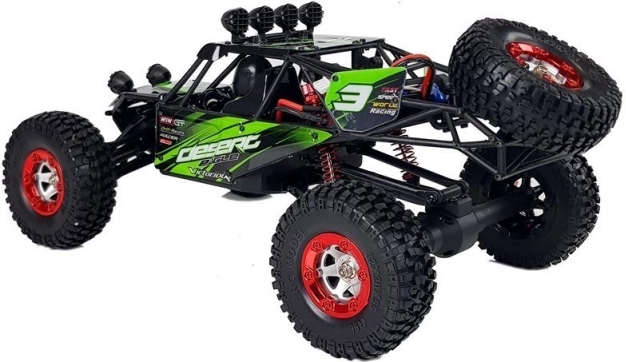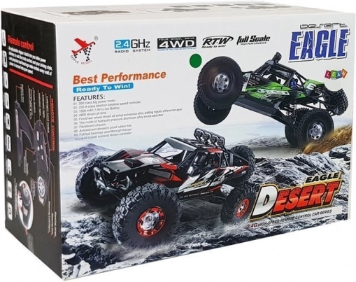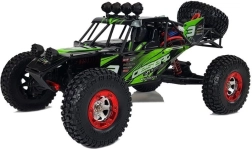 Wydajny terenowy RC buggy w skali 1:12 z napędem 4x4, prędkością do 30 km/h i wytrzymałą konstrukcją do jazdy w wymagającym terenie. Duże opony off-road ze specjalnym bieżnikiem, niezależne zawieszenie wszystkich kół oraz niezawodne sterowanie 2,4 GHz do 100 m zapewniają świetną stabilność i zabawę. Zasilany akumulatorem 7,4 V 1500 mAh Li-ion, który zapewnia do 15 minut jazdy.
