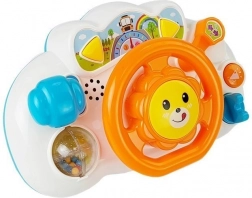 Edukacyjna kierownica naśladuje prawdziwą deskę rozdzielczą i naturalnie wspiera naukę poprzez zabawę. Dziecko cieszy migającymi światełkami, realistycznymi efektami dźwiękowymi i prostymi elementami sterującymi dopasowanymi do małych rączek. Dzięki kompaktowym wymiarom to świetny towarzysz w podróży i do codziennej zabawy.