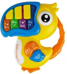 Pianinko i gitara w kształcie papugi i rybki pomagają dzieciom odkrywać świat wszystkich zmysłów - widzieć, słyszeć i dotykać. Dzięki różnorodnym funkcjom i kolorowemu designowi dzieci uczą się rozpoznawać nowe dźwięki, kolory i kształty.