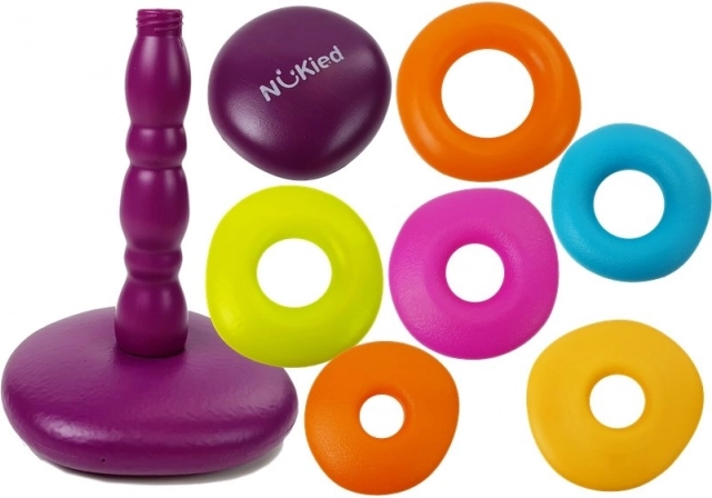 Ta klasyczna zabawka jest świetnym wyborem dla rozwoju dzieci. Układanie pierścieni umożliwia dzieciom naukę sortowania według wielkości i struktury, co wspiera myślenie logiczne. Wykonana z bezpiecznego i miękkiego plastiku, zabawka jest idealna dla małych rączek.