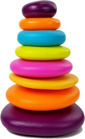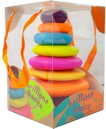 Dzięki układaniu pierścieni dzieci ćwiczą motorykę małą i koordynację ręka-oko.