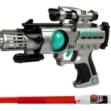 Laserowy pistolet i świetlny miecz są wyposażone w efekty świetlne i dźwiękowe, które dodają więcej realizmu do akcji w grze.