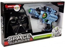 W tym wspaniałym zestawie znajdziesz futurystyczny niebieski pistolet i czarną maskę, która świeci dzięki niebieskim i czerwonym światłom. Dzieci będą miały realistyczną zabawę w kosmicznego wojownika. Każdy element wykonany jest z wysokiej jakości plastiku, który jest bezpieczny i trwały.