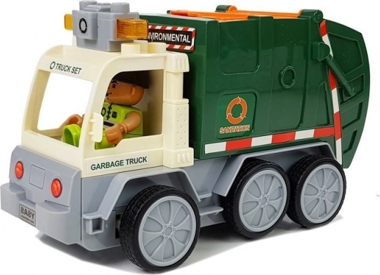 Śmieciarka ma wierne detale i praktyczną otwieraną górną klapę do załadunku „odpadów”, dzięki czemu zabawa wygląda jak w prawdziwym świecie.