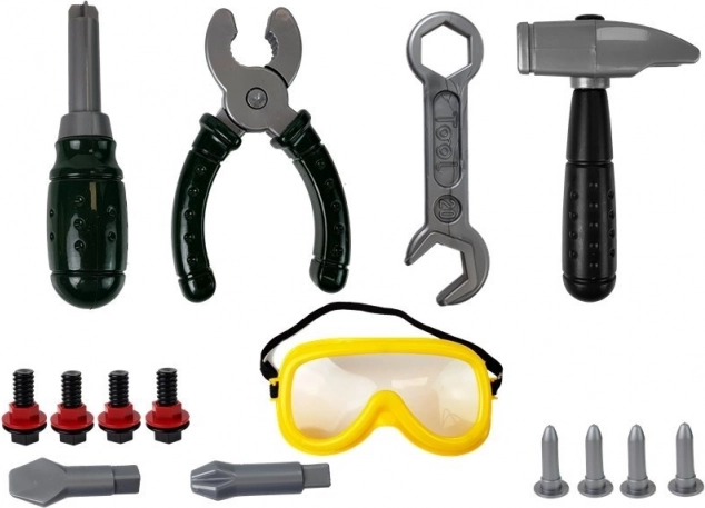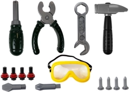 Zestaw zawiera kask i okulary, dzięki czemu dziecko czuje się jak prawdziwy majsterkowicz i dba o swoje bezpieczeństwo podczas zabawy.