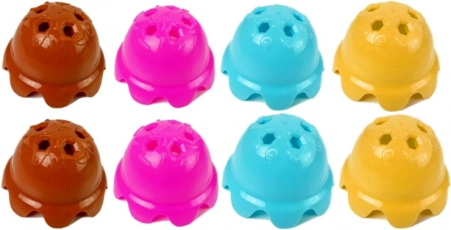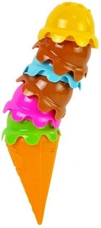 Cały zestaw wykonany jest z plastiku i posiada certyfikat CE. Wymiary rożka to 11,5 cm wysokości, łyżeczki 17 cm długości, a kulek 7 cm x 4,5 cm. Zapakowane w pudełko o wymiarach 25 cm x 20 cm x 7,5 cm.