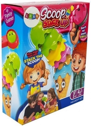 Scoop Stack Up to perfekcyjna gra na rodzinne wieczory, podczas których ty i twoi bliscy zmierzycie swoje umiejętności i cierpliwość w budowaniu wieży z lodowych kulek. Grać mogą od 2 do 4 osób i jest odpowiednia dla dzieci od 3 lat. Celem gry jest umieszczenie jak największej liczby kulek na rożku za pomocą łyżeczki, nie przewracając całej wieży.