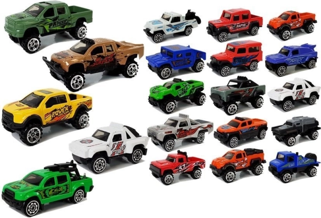 Zestaw terenowych aut dla dzieci – różne kolory, 20 sztuk