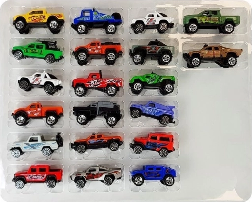 Zestaw 20 różnokolorowych aut terenowych dla dzieci. Wysokiej jakości materiały, idealny do zabawy i rozwoju kreatywności dzieci.