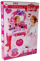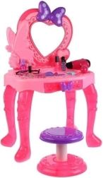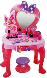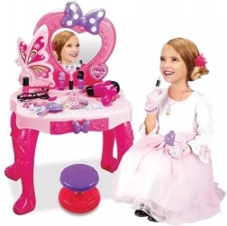 Przedstawiamy przepiękną różową dziecięcą toaletkę, która zainspiruje każdą małą księżniczkę do nieskończonych godzin kreatywnej zabawy. Toaletka wyposażona jest w lustro w kształcie serca z motylkowymi dekoracjami i dostarczana z bogatym zestawem akcesoriów do zabawy w kosmetyczkę.