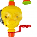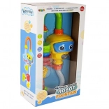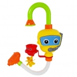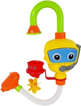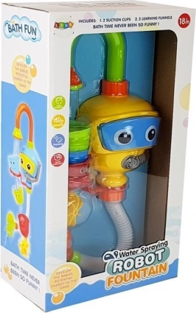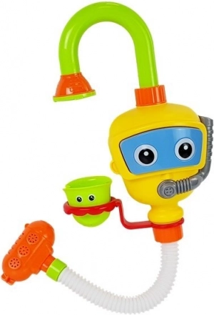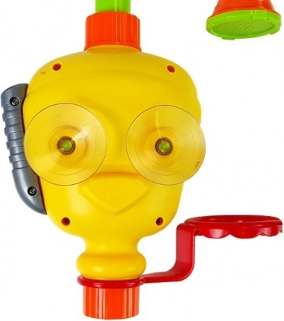 Ta zabawka jest świetnym uzupełnieniem do wanny dla niemowląt. Jej funkcje wspierają samodzielną zabawę i umożliwiają odkrywanie mechanizmów nalewania wody z kubków. Tylna część robota jest wyposażona w przyssawki, które umożliwiają jego przymocowanie do wanny, przy czym dolna część zabawki powinna być zanurzona w wodzie. Po przymocowaniu wystarczy nacisnąć okulary robota, co sprawi, że woda popłynie z prysznica do fontanny. Specjalne kubki pozwalają łatwo zmieniać kierunek strumienia wody, a ruchome części zabawki tworzą wodospad.