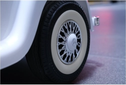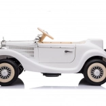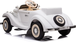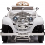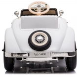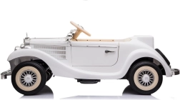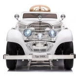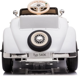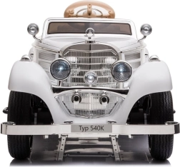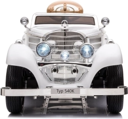 Stylowy dziecięcy samochód elektryczny MERCEDES-BENZ 540K w retro stylu oferuje wysoką jakość wykonania, licencję Mercedes-Benz, chromowane detale oraz światła LED. Napęd 4x45 W z akumulatorem 12V 10Ah zapewnia prędkość 5–7 km/h, miękkie koła EVA gwarantują komfort jazdy, a pas bezpieczeństwa spokój rodzicom. Sterowanie umożliwia pilot 2.4G z awaryjnym zatrzymaniem.