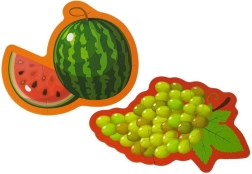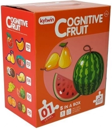 Wyraziste ilustracje truskawek, gruszek, kiwi, pomarańczy i innych wspierają percepcję wzrokową oraz naukę nazw owoców.