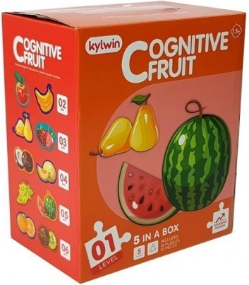 Ten sprytnie zaprojektowany zestaw oferuje pięć oddzielnych mini-puzzli z motywami owoców, które prowadzą dziecko krok po kroku. Każde pudełko dodaje elementy i zwiększa poziom trudności (4–6–8–10–12), dzięki czemu dziecko naturalnie robi postępy i wzmacnia swoje umiejętności. Na odwrocie znajdują się nazwy owoców w języku angielskim, co wspiera wczesną świadomość językową.
