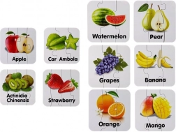 Gra rozwija koordynację ręka–oko, logiczne myślenie oraz cierpliwość. Wyraziste kolory i czytelne ilustracje przyciągają uwagę i pobudzają ciekawość. Z elementów można ułożyć aż 10 poprawnych par – na przykład truskawka, jabłko, arbuz, banan, mango czy pomarańcza.