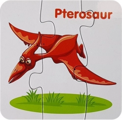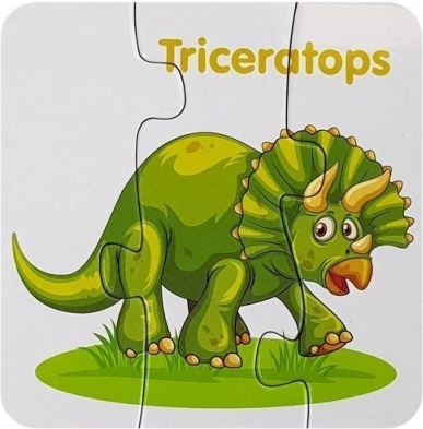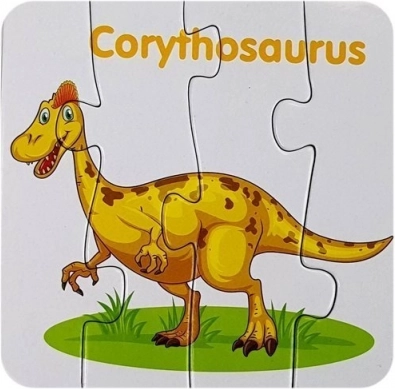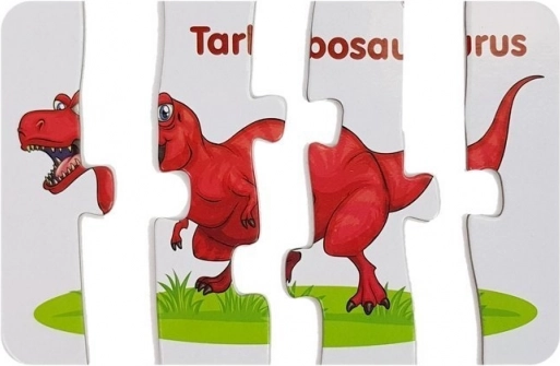 Sprytna nauka przez zabawę: kolorowe puzzle z dinozaurami motywują dzieci do odkrywania i naturalnie rozwijają słownictwo w języku angielskim. Każdy dinozaur jest wyraźnie zilustrowany i oznaczony angielską nazwą, dzięki czemu dzieci łatwo przyswajają nowe słowa.