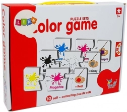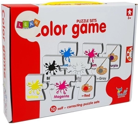 Odkryj zabawny sposób, aby zapoznać dzieci z kolorami i językiem angielskim. Te edukacyjne puzzle uczą, jak z różnych odcieni powstają nowe kolory, a jednocześnie rozszerzają słownictwo w języku angielskim. Dzięki łączeniu elementów dziecko ćwiczy logikę, cierpliwość i motorykę małą. W opakowaniu znajdziesz aż 10 kombinacji kolorów, angielskie podpisy oraz solidne kartonowe elementy idealne dla małych rączek.