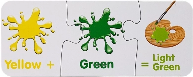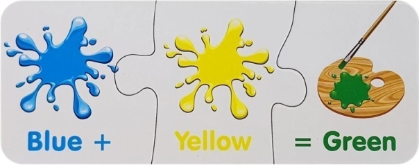 Układanie to dla dzieci naturalna forma zabawy – a gdy przy okazji uczą się kolorów i pierwszych angielskich słówek, to idealne połączenie. Każdy zestaw puzzli pokazuje dwa kolory i ich wynik, wszystko z nazwami po angielsku. Dzieci łatwo pojmują mieszanie barw i jednocześnie w naturalny sposób przyswajają język obcy.