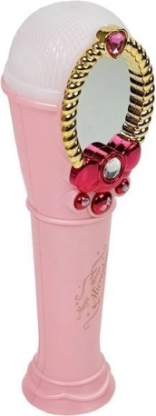 Ten dziecięcy mikrofon karaoke w różowym kolorze motywuje do śpiewu, poczucia rytmu i pierwszych scenicznych występów. Po włączeniu w zdobionym lusterku magicznie pojawia się postać dziewczynki, końcówki mikrofonu świecą wielobarwnie, a trzy funkcjonalne przyciski zapewniają muzykę i efekty rytmiczne.