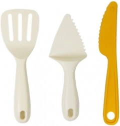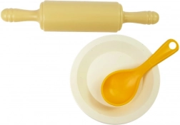 Zestaw zawiera wałeczek, łyżkę, szpatułkę, nóż do serwowania i miskę – wszystko do realistycznej zabawy w kuchni.