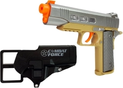 Pistolet zasilany jest trzema bateriami AG13 1,5 V (w zestawie). Zabawki są odpowiednie dla dzieci powyżej 3. roku życia. Zestaw posiada certyfikat CE i spełnia normę EN 71. Zestaw zapakowany w kartonowe pudełko, idealny na prezent.