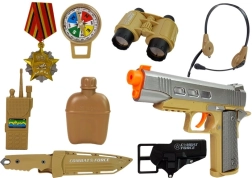 Wojskowy zestaw z akcesoriami Pistolet Nóż Lornetka Słuchawki Gwizdek Krótkofalówka