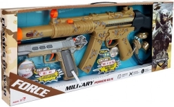 Zabawn y wojskowy zestaw dla małych pasjonatów obejmuje dwa pistolety (duży i mały/„rewolwer”), zestaw słuchawkowy z mikrofonem do komunikacji oraz gwizdek. Duży pistolet wydaje realistyczne odgłosy strzałów i ma efekty świetlne, mniejszy pistolet odtwarza pojedyncze strzały oraz dźwięk przeładowania. Wszystko z wysokiej jakości plastiku, idealne do zabawy, na karnawał lub imprezy kostiumowe.