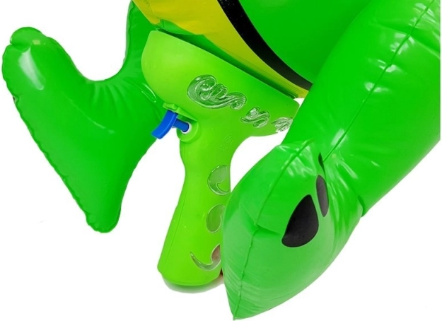 Duży wodny pistolet dinozaura sprawi radość każdemu dziecku. Świetny wybór do basenu lub wodnych zabaw podczas wakacji – gwarancja świetnej zabawy. W zestawie znajduje się pompka do napełniania balonika, do pistoletu wlewa się wodę, a po naciśnięciu spustu woda tryska z paszczy dinozaura.