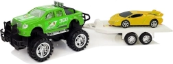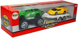 Auto z lawetą zapewnia niezapomnianą zabawę dzieciom, które lubią tworzyć własne historie. Cofnij samochód terenowy i obserwuj, jak dzięki napędowi ciernemu szybko mknie po podłodze. Lawetę można łatwo odłączyć, a wszystkie pojazdy mogą być używane oddzielnie.