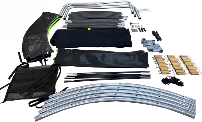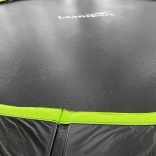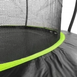 Wysoka siatka ok. 180 cm z wyraźną lamówką i solidnym zamkiem zapobiega wypadnięciu z powierzchni trampoliny i zwiększa pewność podczas skakania.