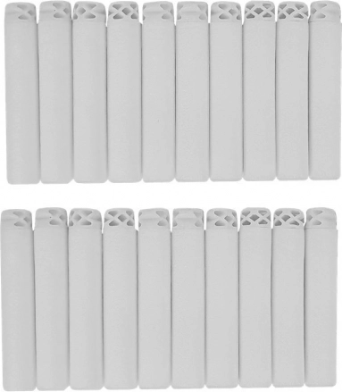 Opakowanie zawiera broń i 20 piankowych nabojów. Broń jest zasilana trzema bateriami AA (nie są dołączone do zestawu) i jej wymiary to 54 cm x 18 cm x 8 cm.