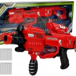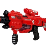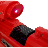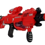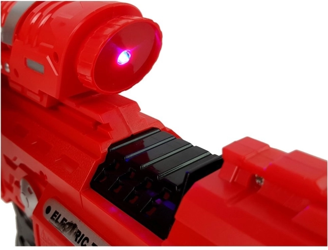 Ten czerwony i czarny elektryczny pistolet dziecięcy ma futurystyczny design, idealny do angażującej zabawy pełnej fantazji.