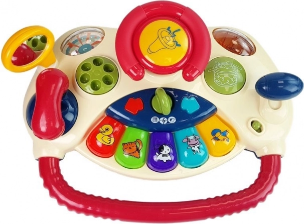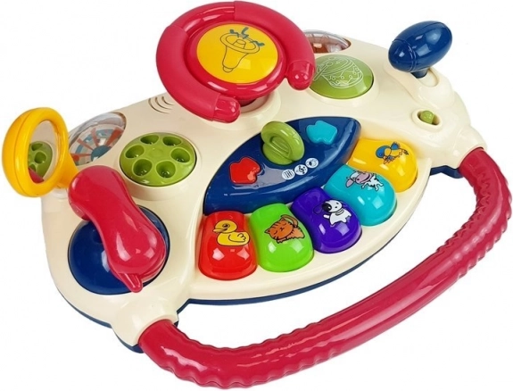 Ciesz się godzinami zabawy z tym interaktywną kierownicą, która przynosi dzieciom świat kolorów, dźwięków i kształtów. Dzieci mogą odkrywać świat poprzez kolorowe przyciski, które aktywują światła i dźwięki, co znacząco wspiera ich umiejętności motoryczne i zdolność zrozumienia otaczającego świata.