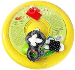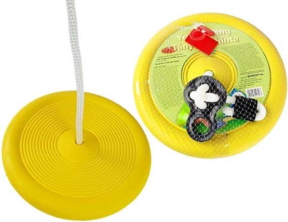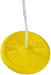 Okrągła huśtawka o średnicy 28 cm jest wyposażona w wygodne siedzisko, grube linowe zawiesie oraz element do montażu. Jej montaż jest prosty i nie wymaga skomplikowanych czynności. Rekomendowana wysokość montażu huśtawki to 35–59 cm nad ziemią, co zapewnia bezpieczeństwo podczas zabawy. Intensywny żółty kolor przyciąga uwagę każdego dziecka i zachęca do dłuższej zabawy.