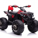 Odporna plastikowa karoseria w czerwono‑czarnym wykończeniu została zaprojektowana tak, aby wytrzymać intensywną zabawę na zewnątrz i była łatwa w utrzymaniu.