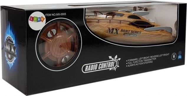 Elegancki kadłub z detalami takimi jak relingi i okna wygląda jak prawdziwy jacht. Pełne sterowanie przód/tył oraz skręty na boki zapewniają łatwe manewrowanie na wodzie.
