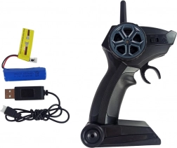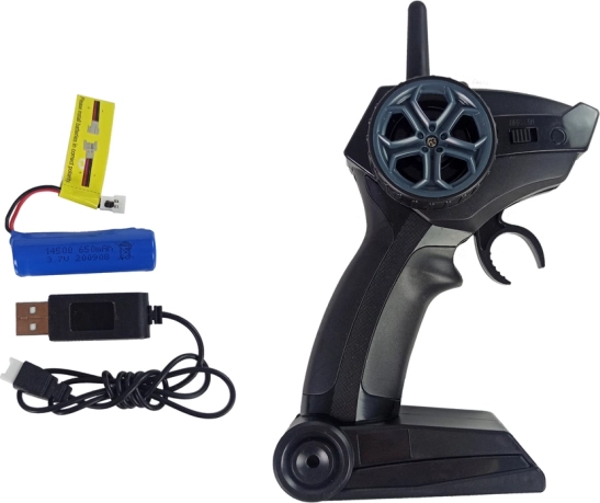 Dwa niezależne silniki i podwójne stery zapewniają znakomitą manewrowość i żwawą akcelerację. Zintegrowany akumulator Li‑ion 3,7 V / 650 mAh zapewnia do 20 minut zabawy, a ładowanie trwa około 60 minut. Ergonomiczny pistoletowy kontroler świetnie leży w dłoni i umożliwia precyzyjne sterowanie do przodu, do tyłu oraz na boki.