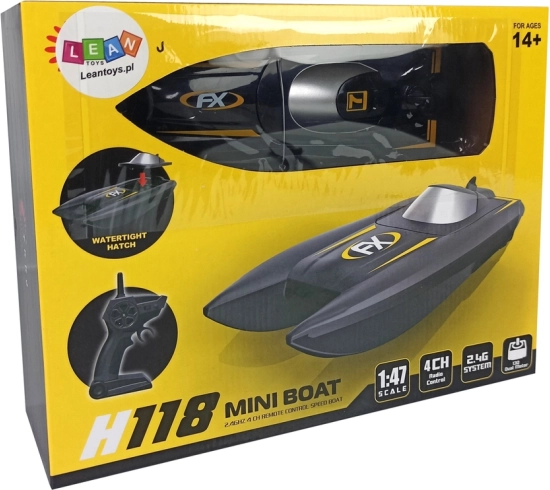 Szybka i zabawna zdalnie sterowana łódź w skali 1:47 do wyścigów na wodzie. Dzięki systemowi 2,4 GHz bez zakłóceń, podwójnym silnikom oraz wodoszczelnej konstrukcji łódź jest szybka, zwrotna i niezawodna. Zasięg do 50 m, czas pracy około 20 minut oraz wygodne sterowanie przód/tył/skręcanie czynią z niej świetny wybór na jezioro, staw i basen.