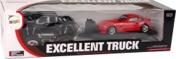 Pojazd terenowy, dla którego żadna przeszkoda nie jest straszna. Doskonale radzi sobie zarówno na asfalcie, jak i na nierównych kamieniach. Zestaw stworzony dla miłośników samochodzików, ponieważ zawiera aż dwa auta w różnych stylach. Pierwszym z nich jest czarny MONSTER TRUCK, który ma możliwość podłączenia przyczepy będącej częścią zestawu. Drugim jest białe BMW, które można przewozić na przyczepie. Modele wykonane są z odpornego na uderzenia plastiku.