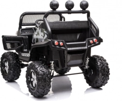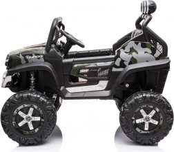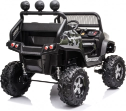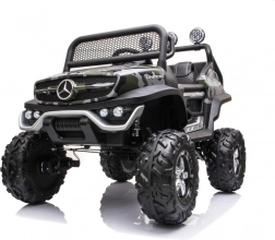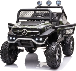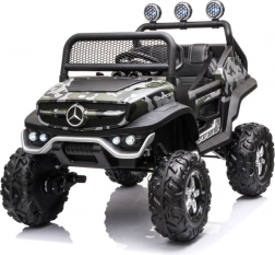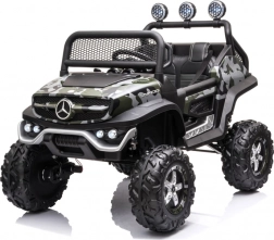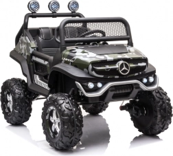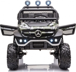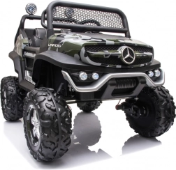 Elektryczny samochód Unimog S dla dzieci to idealny środek transportu dla małych poszukiwaczy przygód, z solidnym designem i barwami moro zapewniającymi realistyczny wygląd.