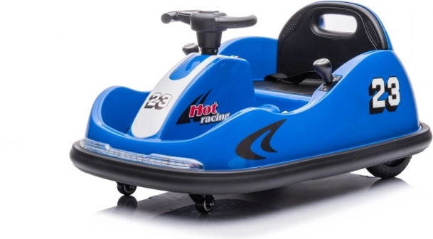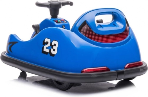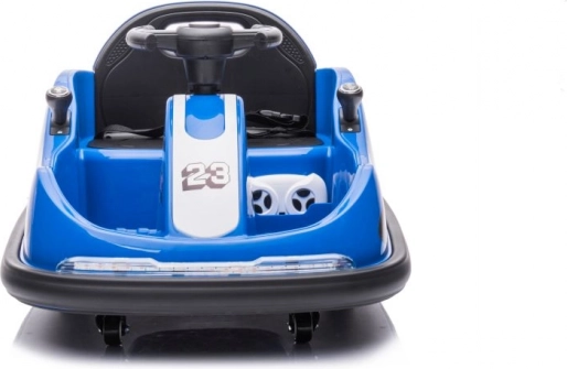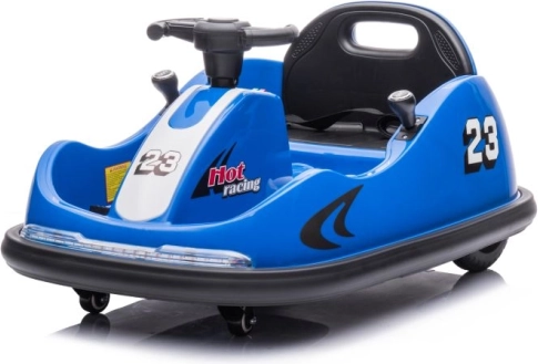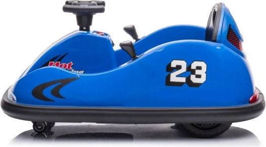 Niebieski dziecięcy samochodzik zderzakowy z numerem 23 i wyścigowym motywem Hot Racing zapewnia dynamiczną jazdę nawet w mniejszych przestrzeniach. Dzięki kompaktowym wymiarom i obrotowym kółkom umożliwia precyzyjne manewrowanie i płynny obrót w miejscu. Siedzisko z oparciem oraz ochronna listwa dookoła zwiększają bezpieczeństwo i komfort podczas jazdy.