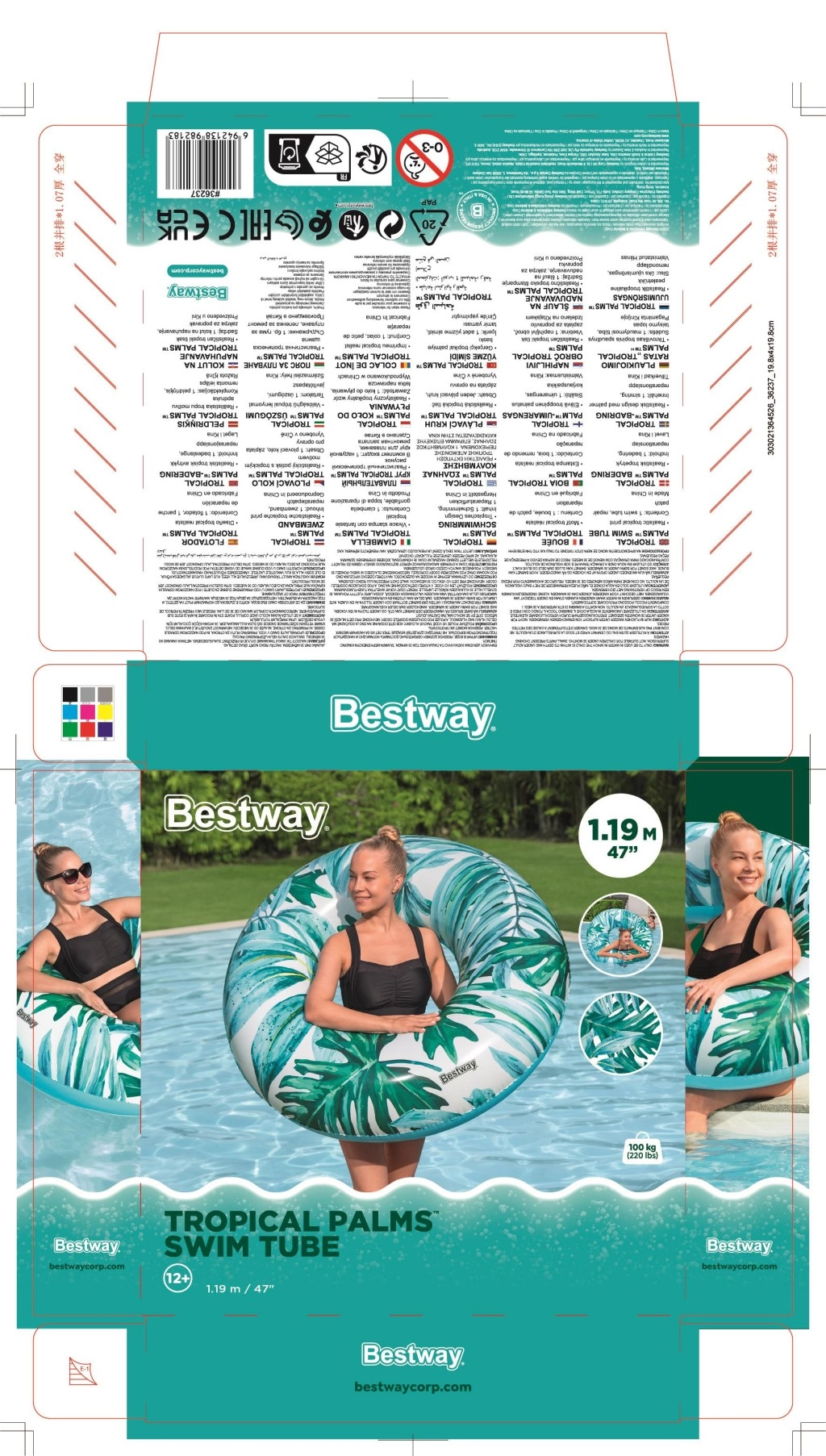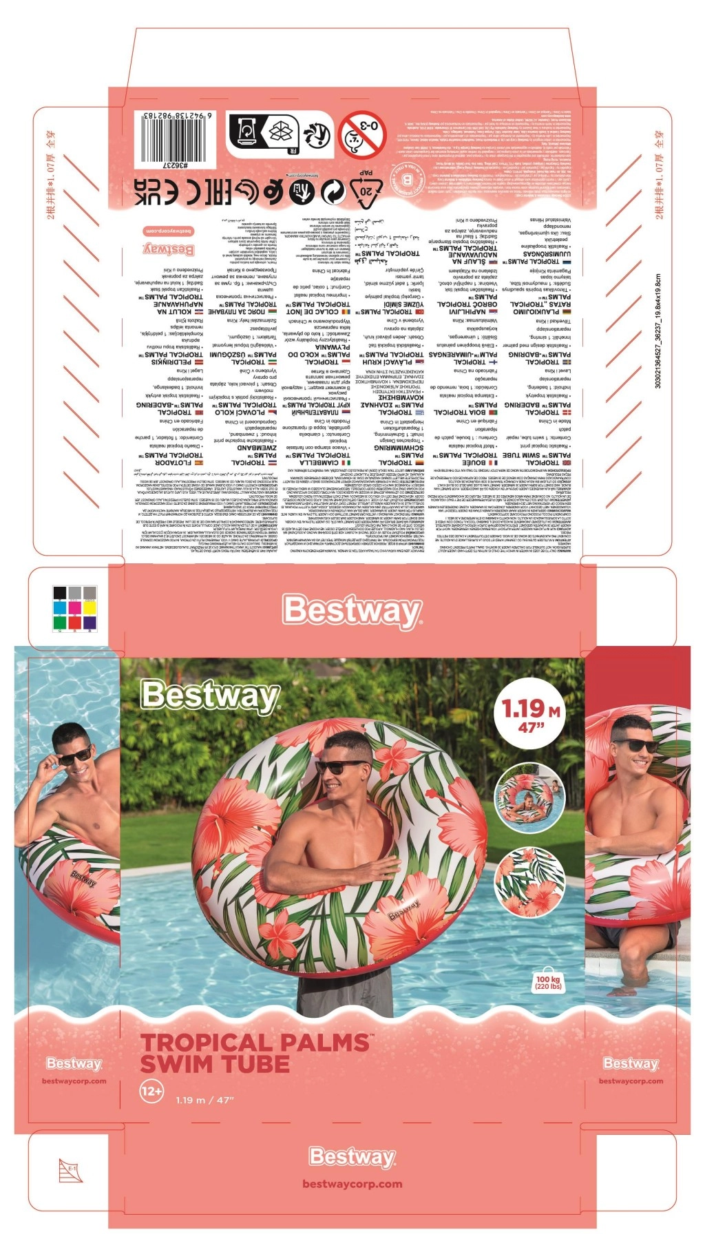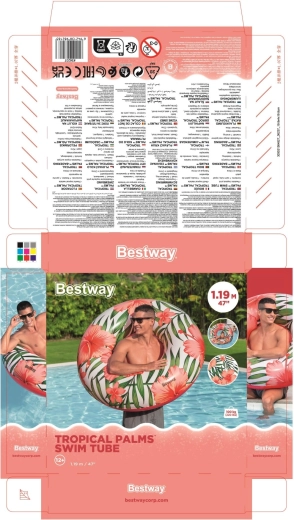 Duże koło do pływania BESTWAY Tropical Palms wnosi wygodę, stabilność i styl do każdej wodnej aktywności. Dzięki wysokiej jakości materiałowi PVC koło jest trwałe i gotowe na wielokrotne użytkowanie przez całe lato. Tropikalny nadruk z liśćmi i kwiatami doda Twojemu relaksowi charakteru, niezależnie czy leniuchujesz na wodzie, czy bawisz się z dziećmi.