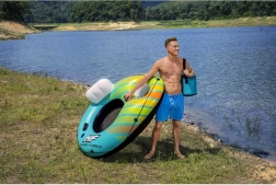 Wytrzymała konstrukcja z PVC jest gotowa na sezon letni i wytrzymuje obciążenie do 90 kg. W zestawie znajduje się także łatka naprawcza do szybkiej pielęgnacji oraz praktyczna torba/chłodząca kieszeń, do której spakujesz orzeźwienie na całe popołudnie.