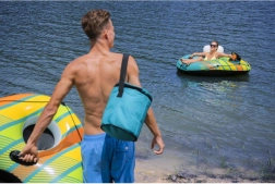 Zintegrowana torba/chłodziarka utrzymuje puszki i butelki dłużej zimne – idealna na całodniowy relaks nad jeziorem lub w basenie.