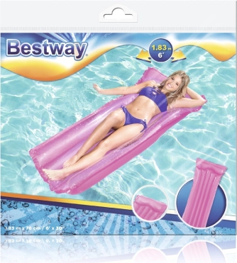 Dmuchany leżak Bestway w eleganckim różowym kolorze jest idealny do wylegiwania się na słońcu i kołysania na wodzie. Zintegrowana poduszka zapewnia wygodne podparcie głowy, a żebrowana powierzchnia gwarantuje stabilność i komfort leżenia.
