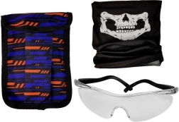 - Okulary ochronne oraz dwa pomarańczowe magazynki na naboje.